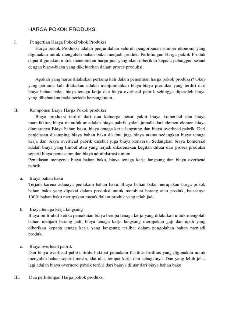Biaya overhead + biaya upah langsung. Biaya utama (prime cost) terdiri dari : Biaya yang disingkat dengan bop ini digunakan untuk menyatakan beberapa biaya tidak langsung yang terkait dengan produk … Bahan baku langsung adalah semua bahan yang menjadi bagian tak terpisahkan dari barang jadi, seperti misalnya kayu untuk membuat lemari atau baja untuk membuat mobil. Biaya konversi (conversion cost) terdiri dari: Penggolongan biaya overhead pabrik menurut perilakunya dalam hubungannya dengan perubahan volume produksi. Biaya ini mencerminkan biaya pengubahan bahan langsung menjadi barang jadi. Biaya bahan baku langsung + biaya tenaga kerja langsung. Biaya bahan penolong, adalah bahan yang bukan bagian dari hasil produksi alias nilainya relatif kecil …